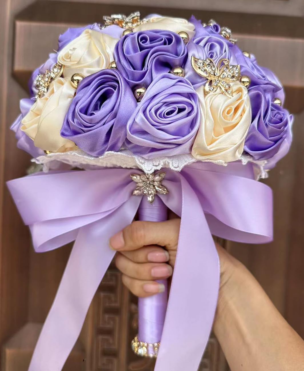 You Forever 8.3" Handmade Satin Rose Bridal Bouquet