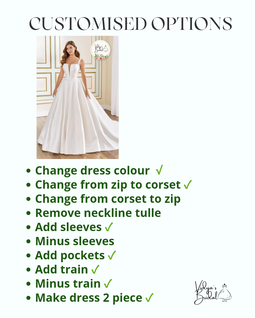 Camellia effortlessly marries timeless elegance with modern touches. This stunning ball gown features a chic, sophisticated silhouette, brought to life in sumptuous Mikado. The plunging illusion V-neckline adds a hint of allure, while the voluminous skirt cascades into soft pleats, giving you the perfect fairytale look. For a stylish yet functional detail, this gown surprises with hidden side pockets, blending elegant style with everyday practicality.