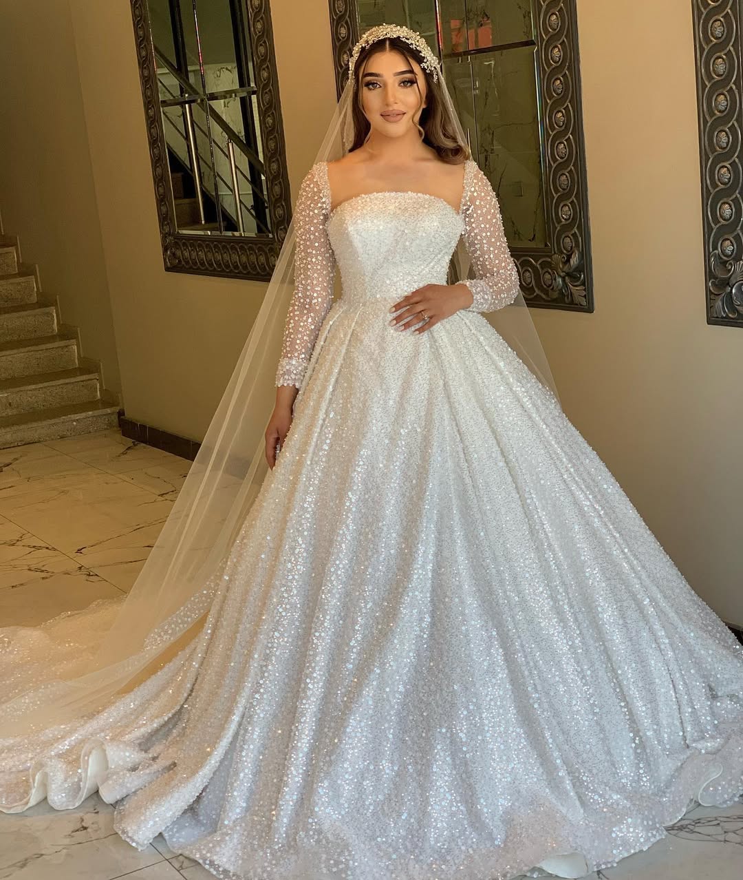 The Lotus Blossom 4853 commands attention with its daring square neckline and voluminous ballgown silhouette. Intricate lace detailing cascades across the bodice and skirt, creating an enchanting interplay of texture and elegance. A sweeping train adds drama and grandeur, perfect for making an unforgettable entrance. This gown transforms any bride into the showstopper she deserves to be.