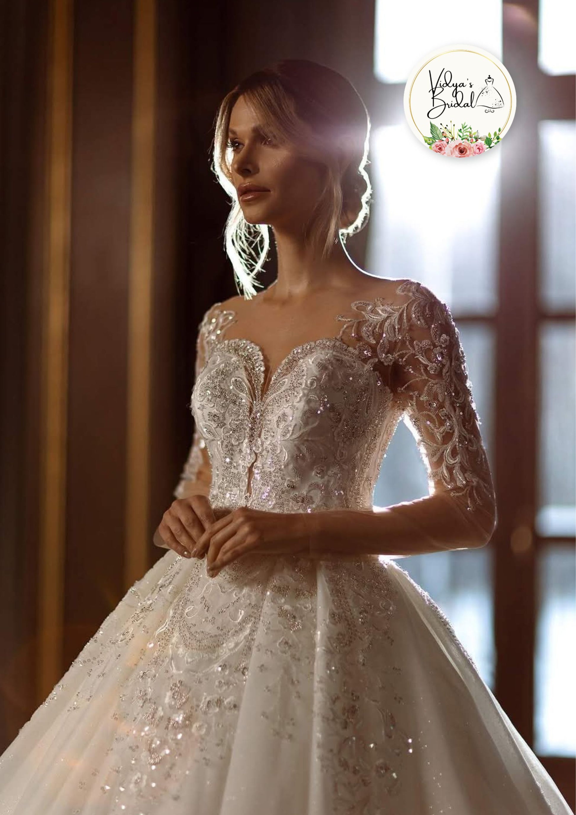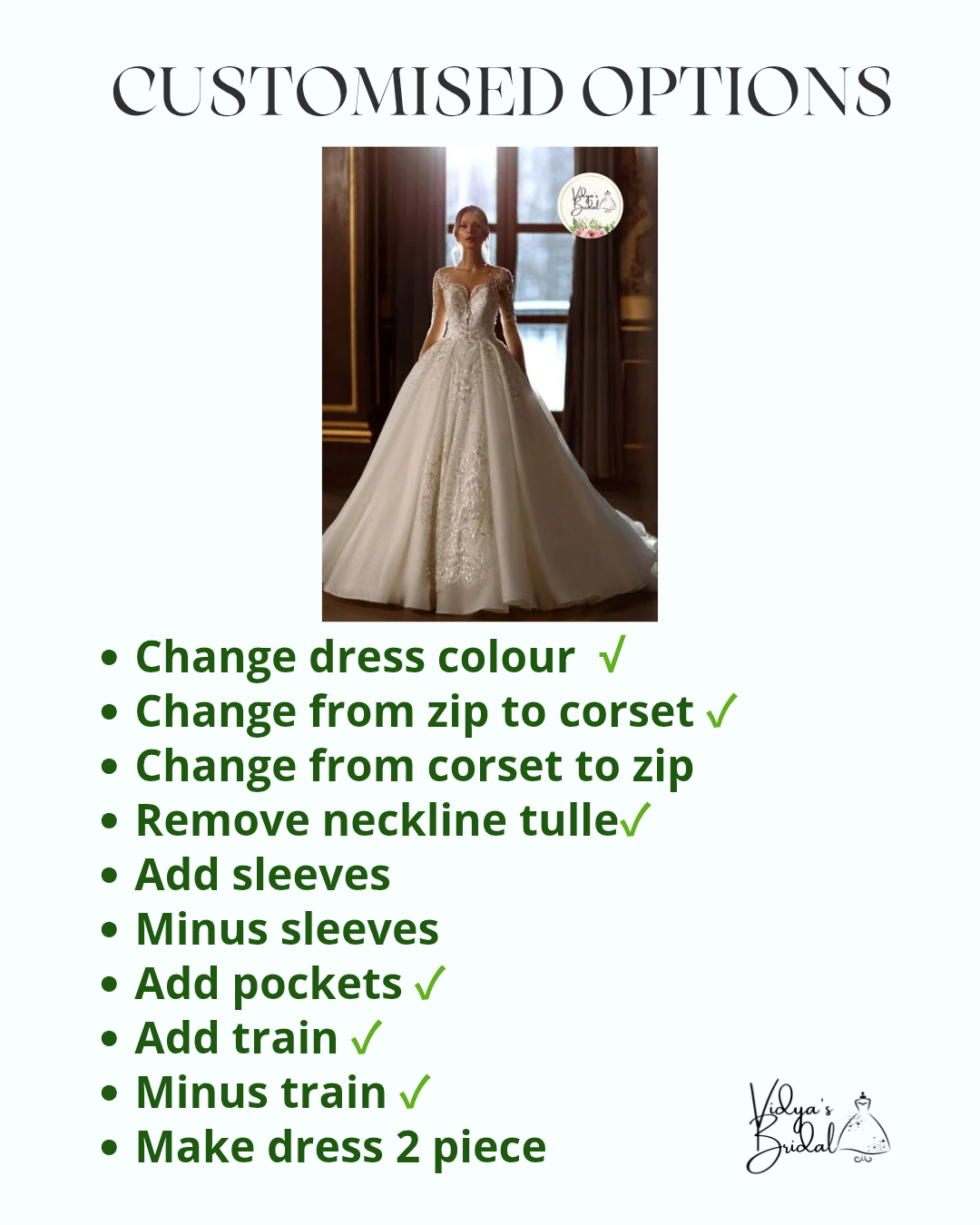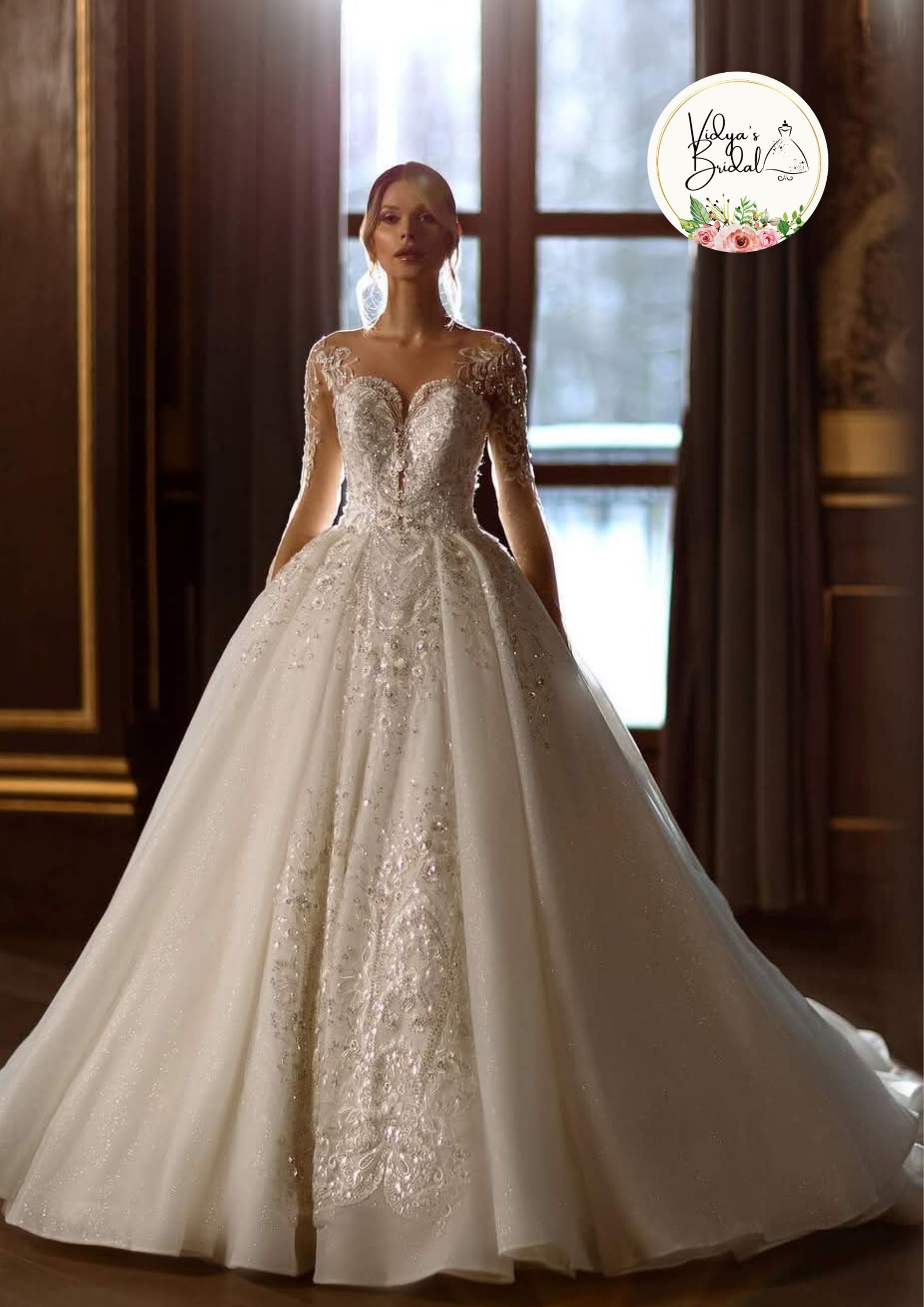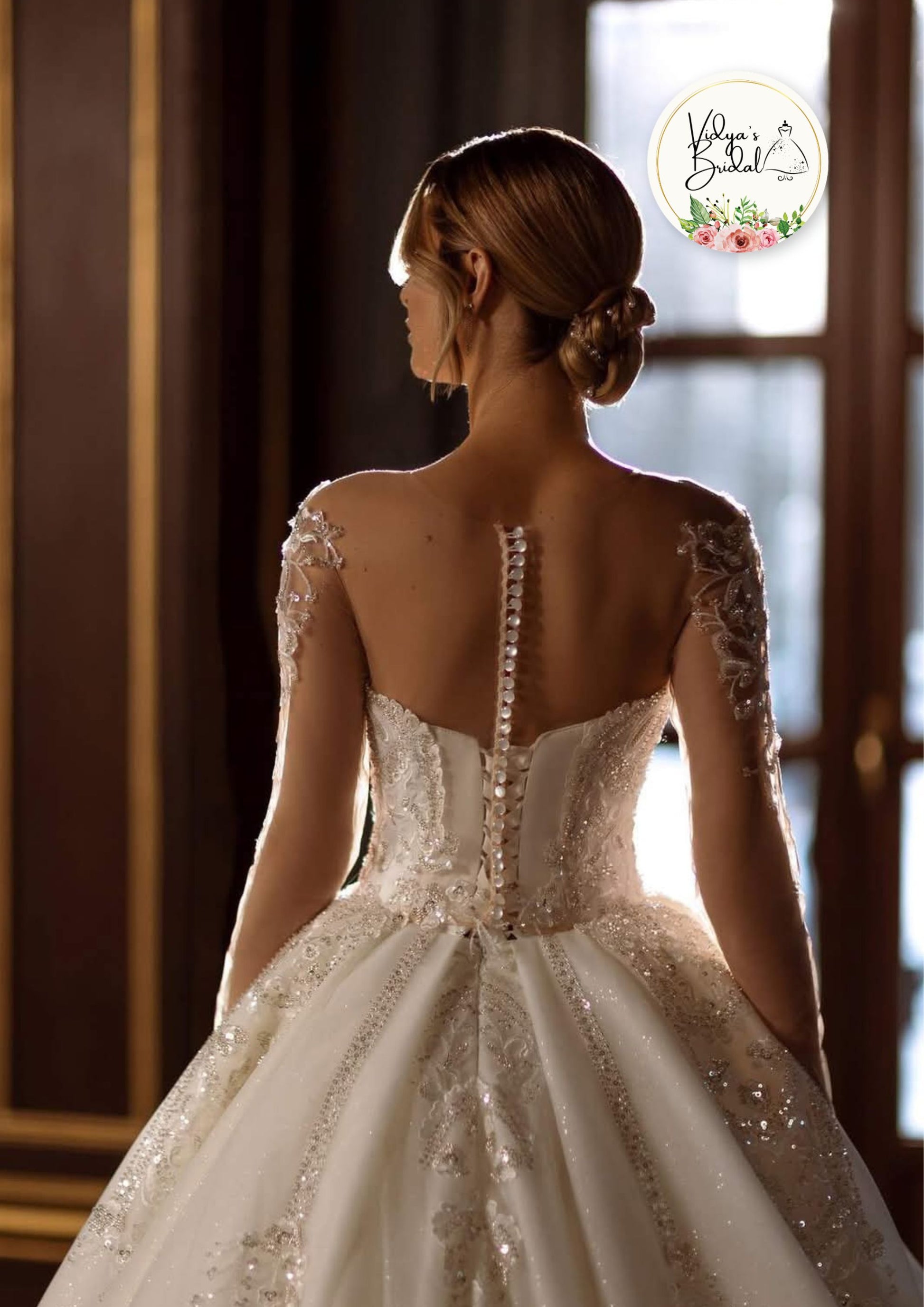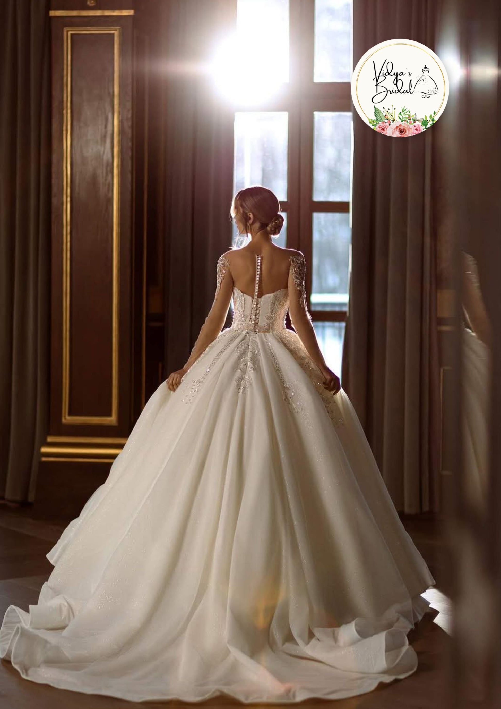 Elevate your bridal look with the Magnolia gown, designed to showcase timeless elegance and refined beauty. This stunning ivory dress features a delicate double sweetheart neckline, richly decorated with intricate appliques that add a touch of romance and sophistication. The flowing chiffon skirt moves gracefully, creating an ethereal presence as you walk down the aisle. A beautifully gathered train enhances the gown’s dramatic effect, ensuring all eyes are on you at every moment. Perfect for brides seeking a graceful and unforgettable statement, Magnolia combines classic charm with modern allure to make your special day truly extraordinary.