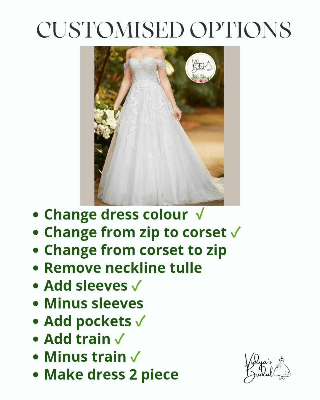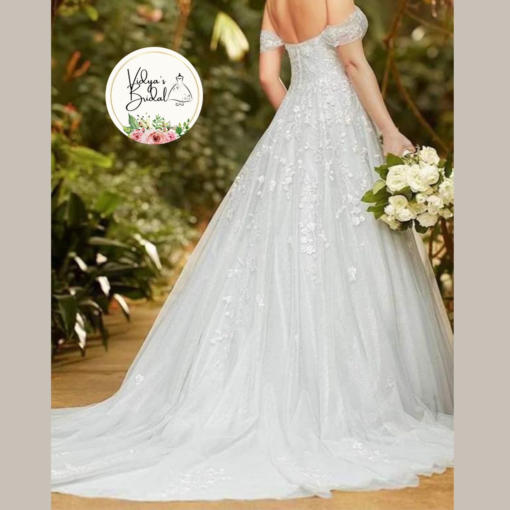 This exquisitely crafted "Neverland Dreams" dress captures a fairy-tale essence with its delicate drop sleeves and romantic sweetheart neckline. The semi-A-line skirt flows gracefully, enhanced by a built-in petticoat that adds volume and movement, perfect for creating an ethereal silhouette. Beautifully adorned with intricate rose appliqués, the dress brings a touch of whimsical elegance to any special occasion. Designed to make you feel like you’ve stepped into a dream, this gown combines timeless charm with exquisite craftsmanship for an unforgettable look.