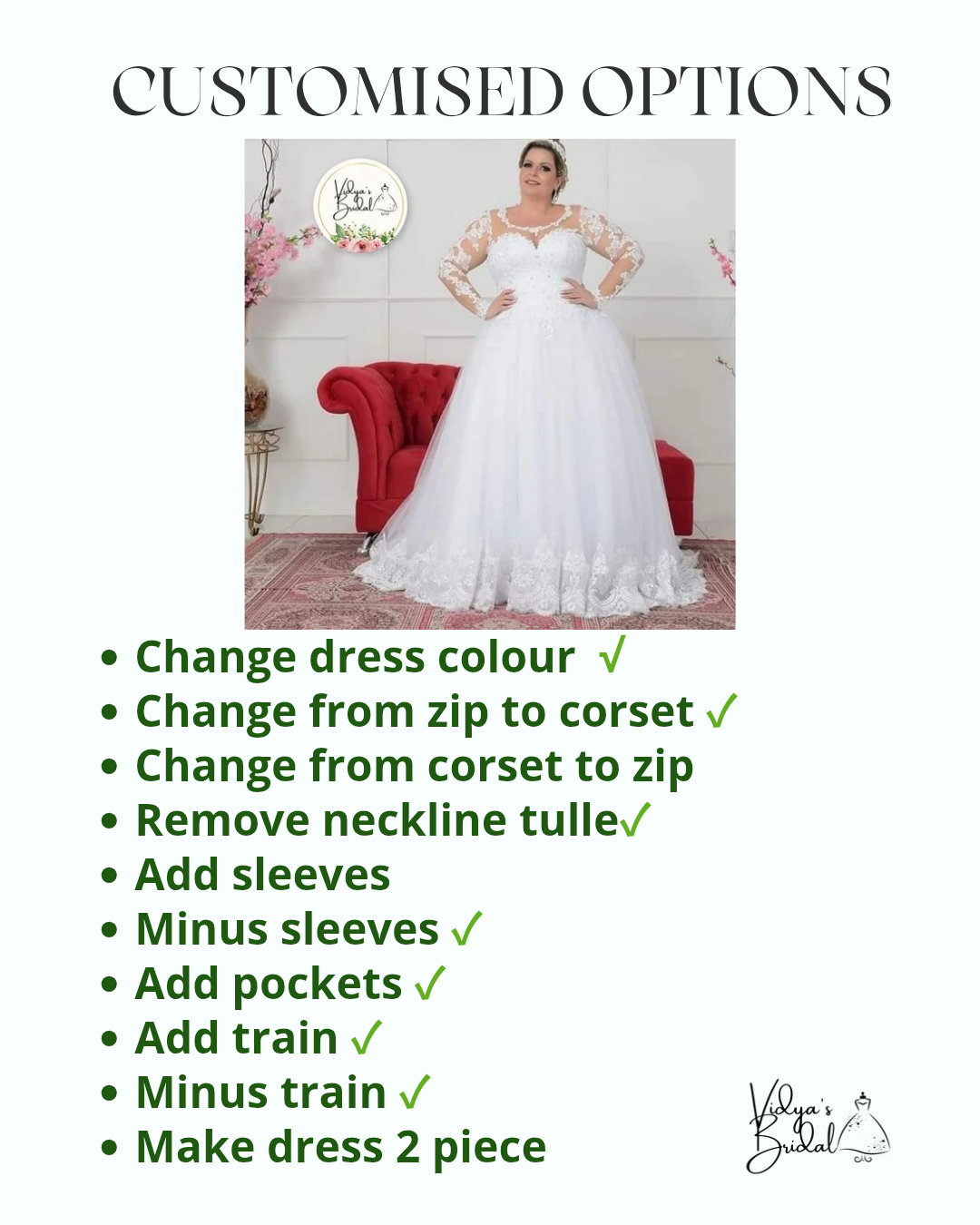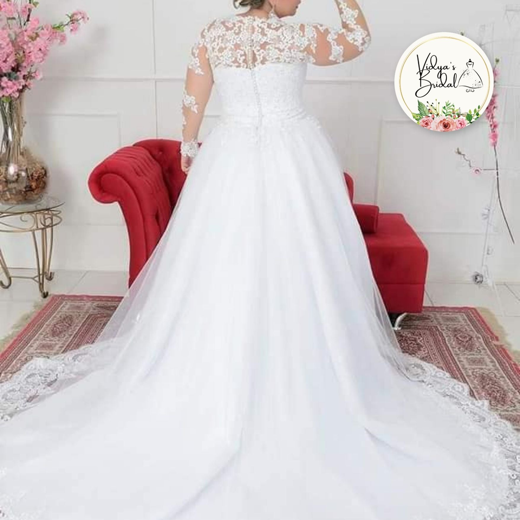 This sheath gown, featuring an illusion neckline and long sleeves, exudes sophistication. Appliqués and clear sequins add embellishment, complemented by a richly embellished border on the skirt and train.