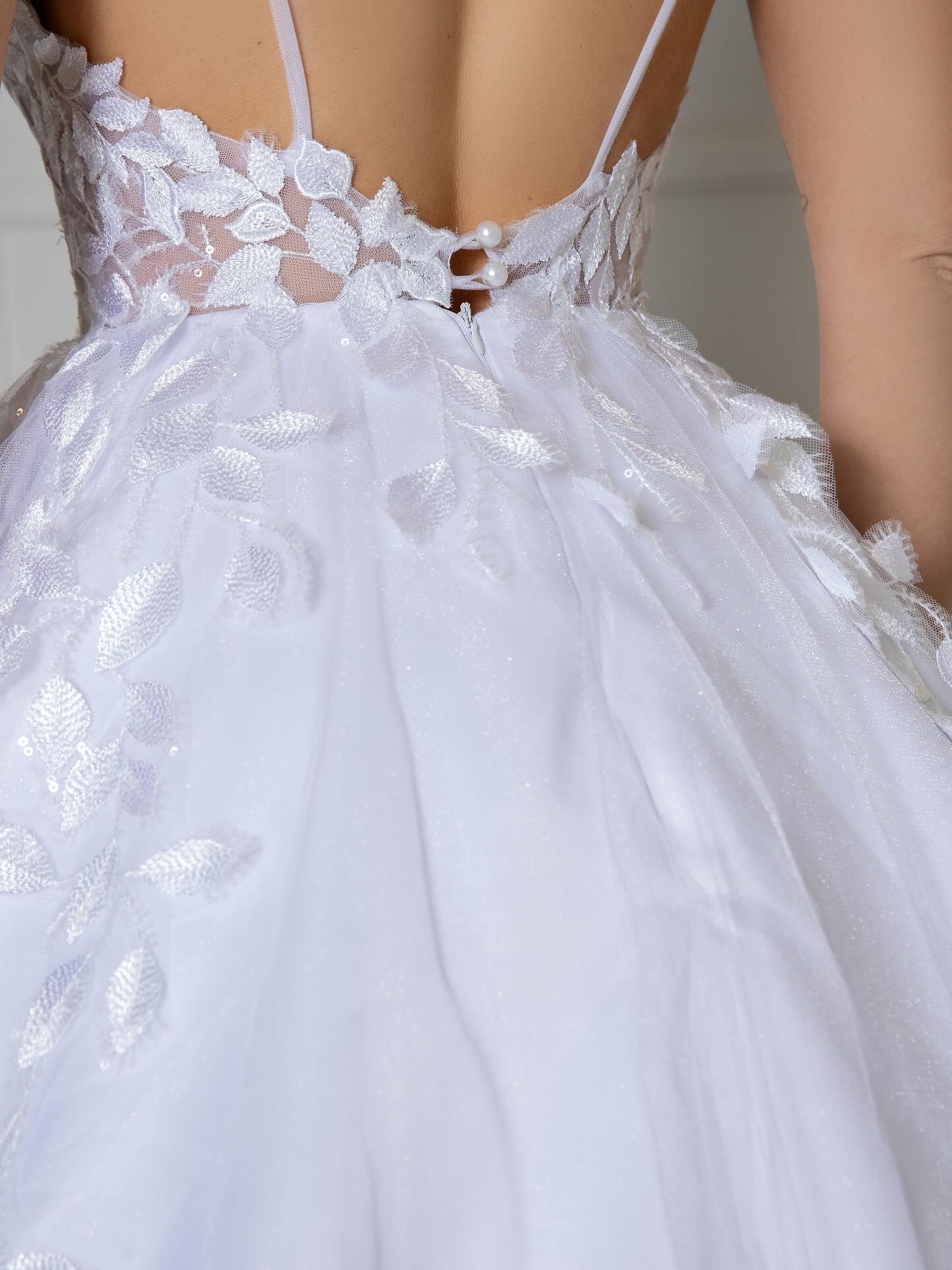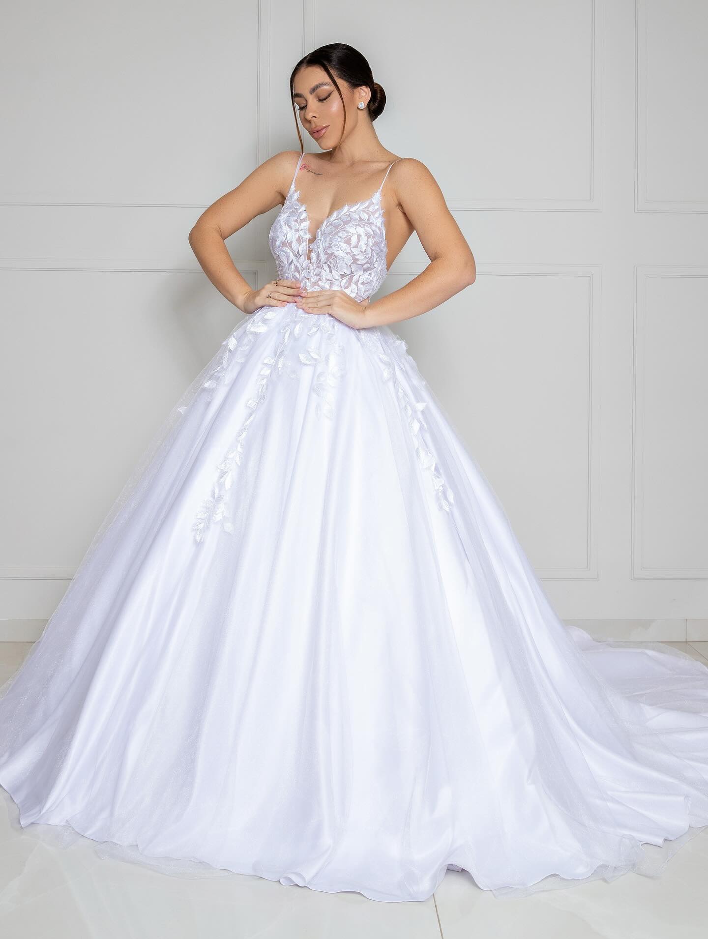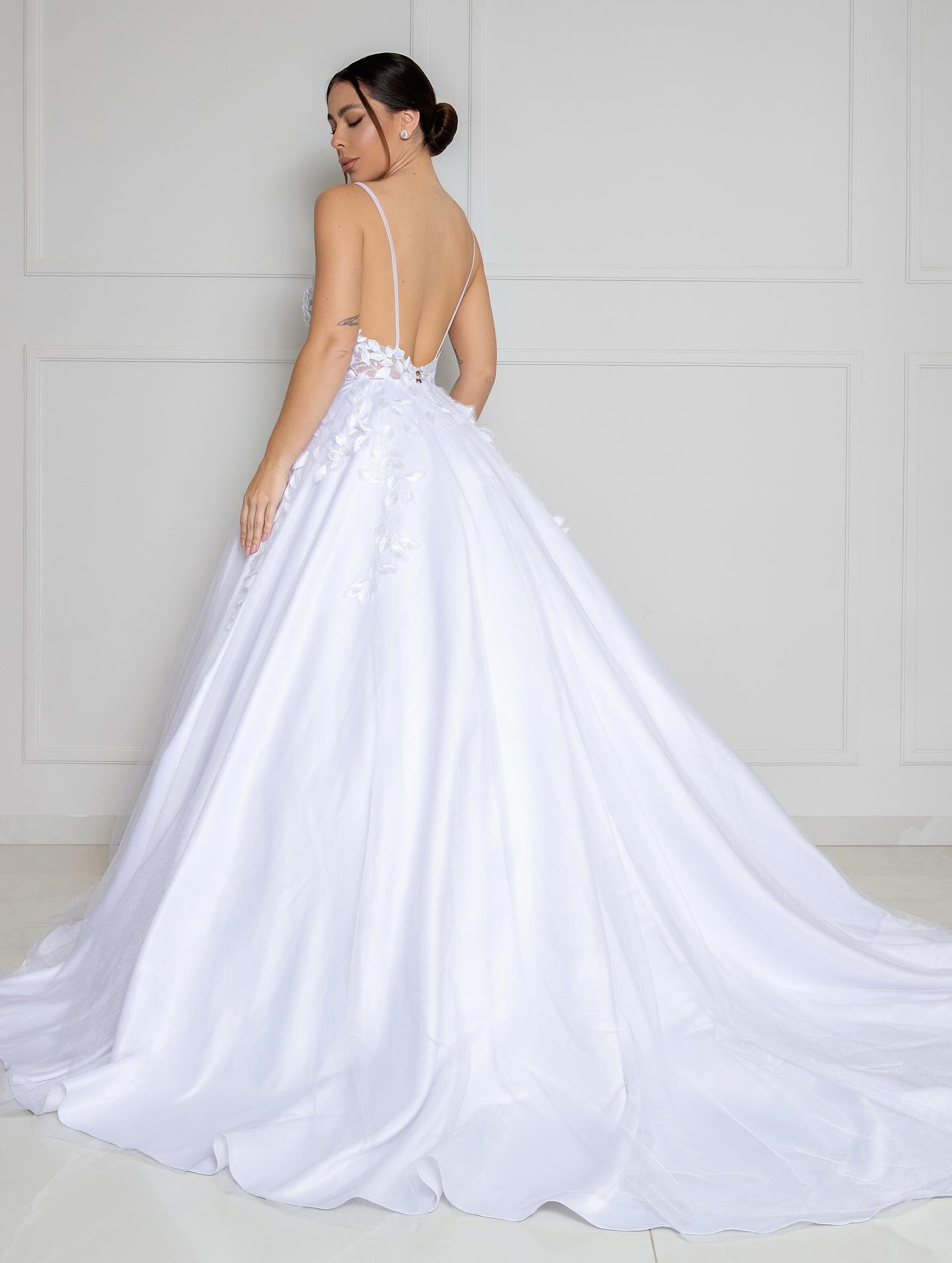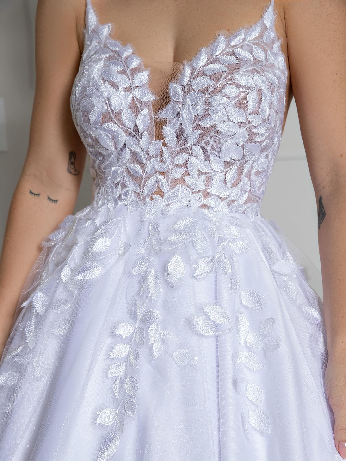 The Rose satin gown offers a bold and distinctive choice for minimalist brides seeking to embody excellence. This gown showcases a unique leafy lace design, complemented by a skin-tone lining, ensuring a confident and effortlessly beautiful presence on your wedding day.