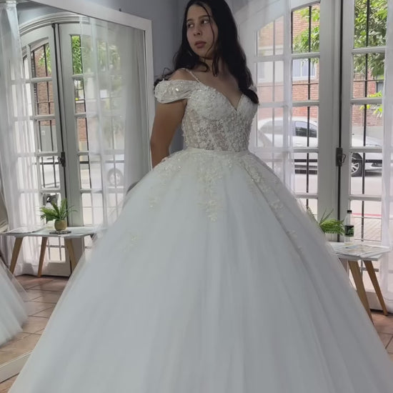 Elevate your bridal look to the next level with Rose 16 - the perfect off shoulder ball gown featuring delicate spaghetti straps and a stunning tulle skirt. Complete with a petticoat, this dress is fit for a princess on her special day. Say yes to Rose 16 and make your fairy tale wedding dreams come true!