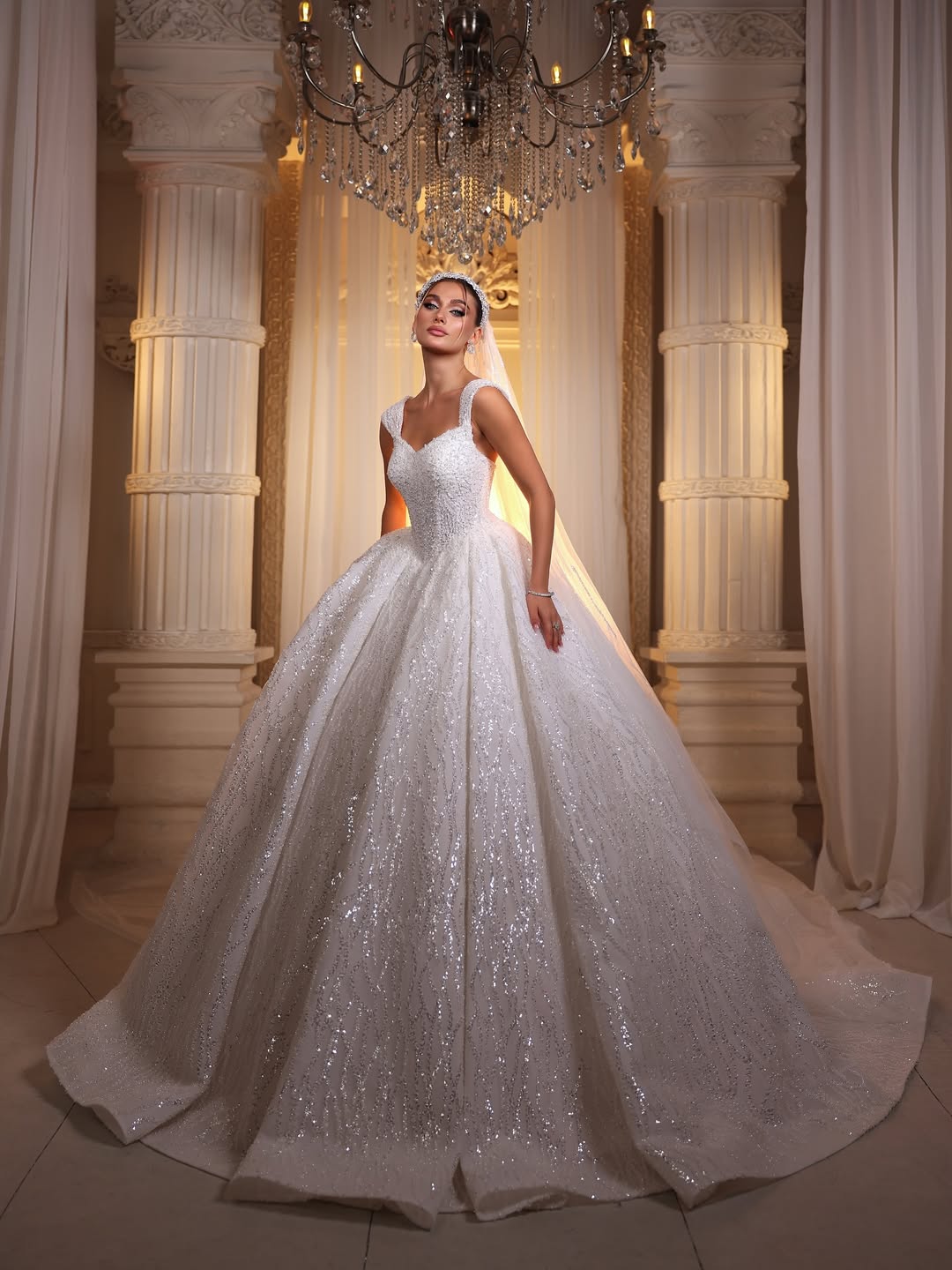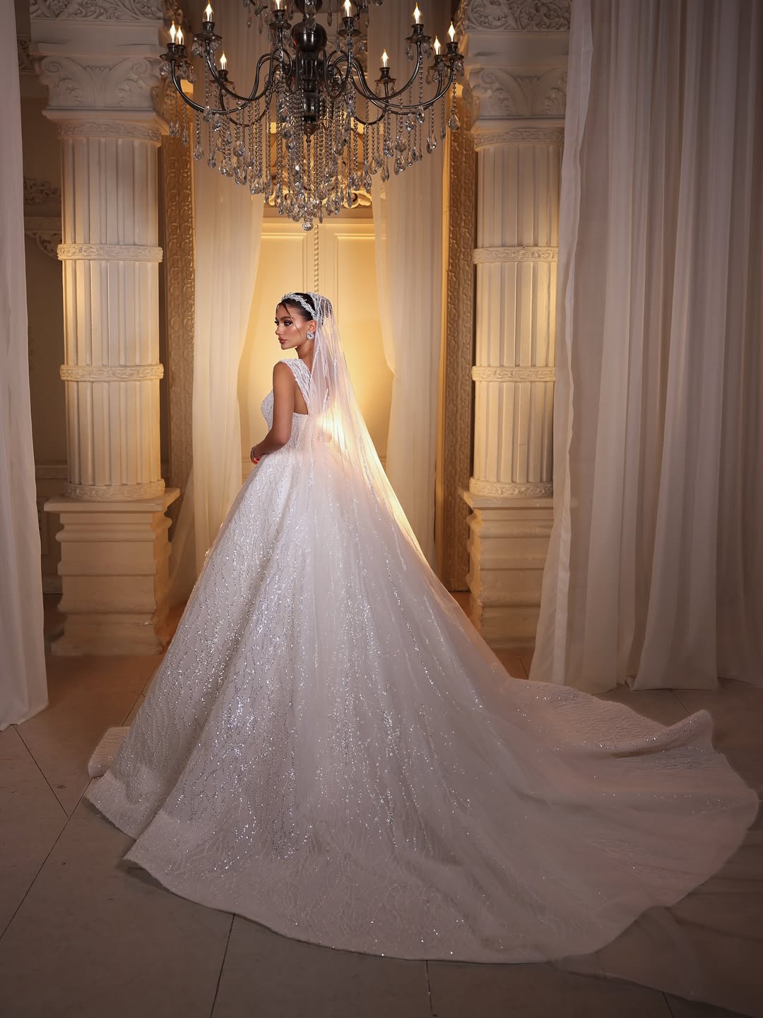 Introducing Rose 12, the epitome of elegance and sophistication. This stunning wedding gown features intricate lace details and a luxurious sparkling fabric that shimmers with every step. The fitted bodice and sweeping skirt exude understated glamour, making it the perfect choice for the modern bride who wants to make a lasting impression on her special day.
