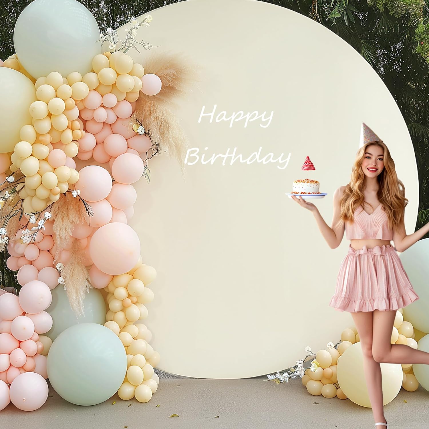 This 7.2 ft diameter round backdrop cover fits circle stands from 5 to 7.2 ft, adding a refined touch to weddings and events. Crafted from high-density, wrinkle-resistant polyester, it offers durability and a smooth, elegant appearance. Its elastic, stretchable fabric ensures a flawless fit on various arch sizes, while the adjustable band makes installation simple. Designed to be reusable and opaque, this cover creates a warm, intimate atmosphere, enhancing your event’s ambiance with sophistication and ease.