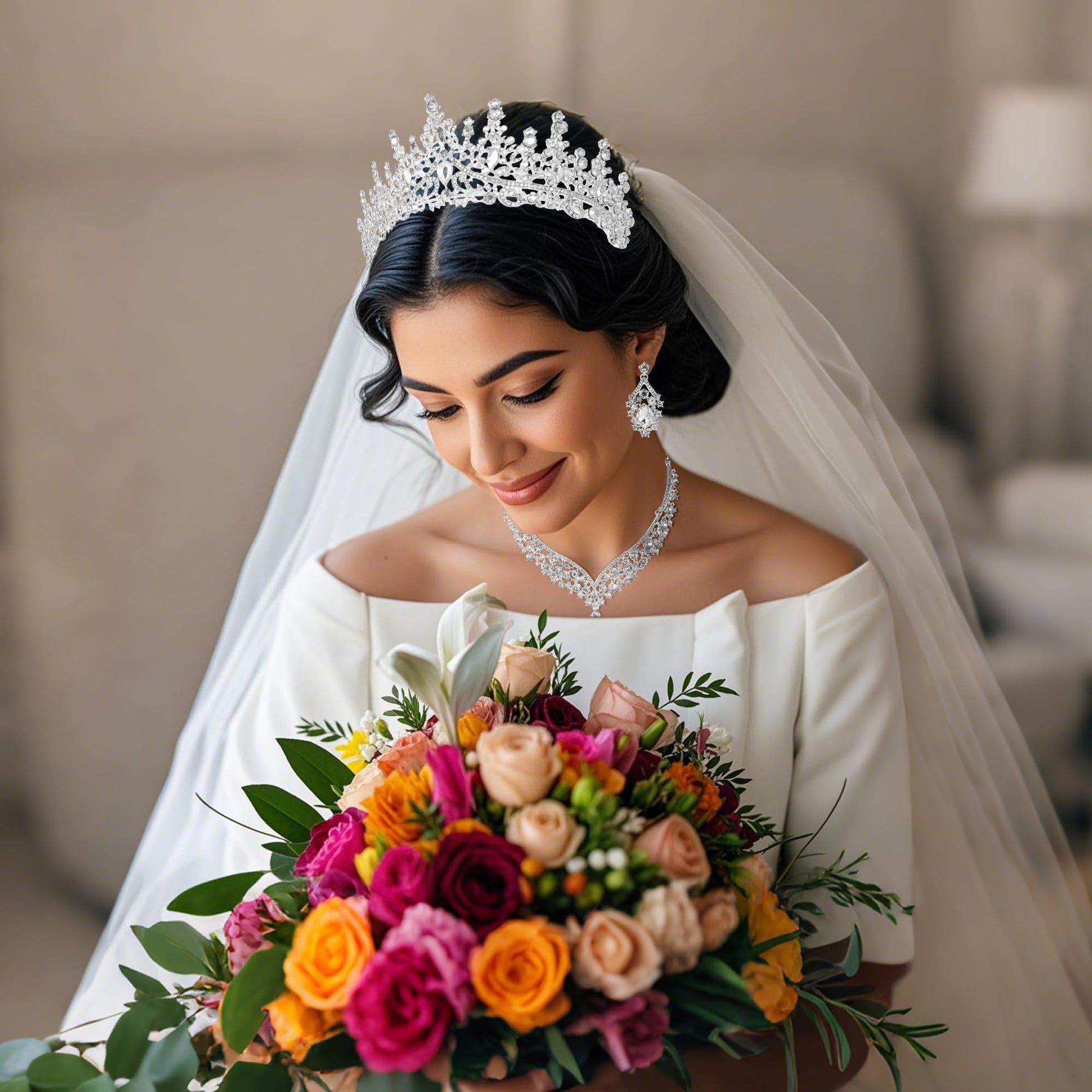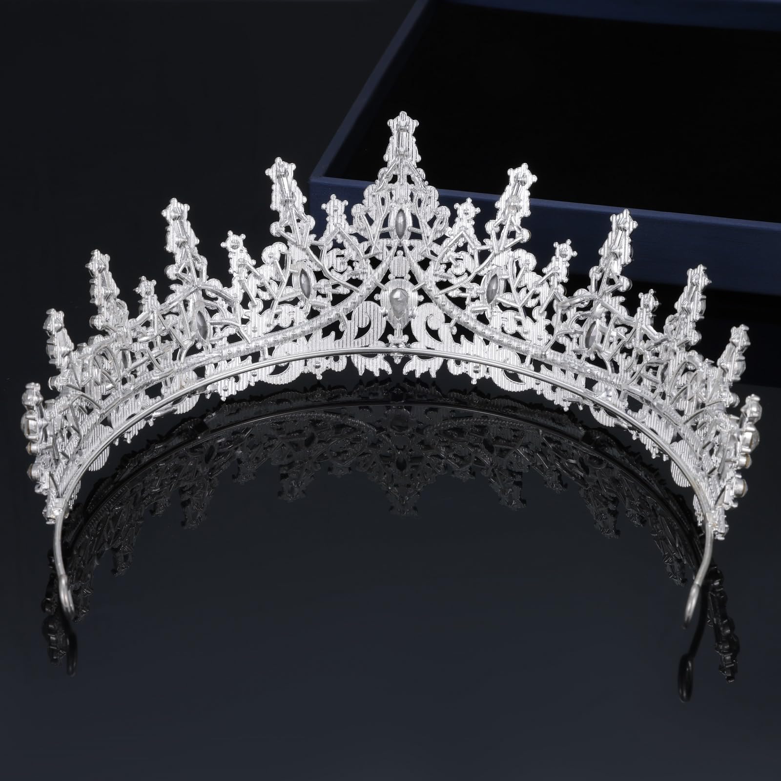 - Crafted from lustrous alloy and shimmering rhinestones, this audacious bridal jewelry set commands attention with its bold presence. The tiara spans 16 cm in diameter with a 7.2 cm height, featuring an adjustable steel ring that adapts to any head shape—ideal for women and girls 15 and up. The matching necklace extends 40 cm, while the ornamental pendant stretches 23 cm long and 3.8 cm wide. Dramatic earrings complete the trio at 2.16 inches tall and 1 inch wide. Whether you're walking down the aisle, celebrating a quinceañera, commanding a stage, or making waves at festivals and formal events, this set delivers the fearless spark