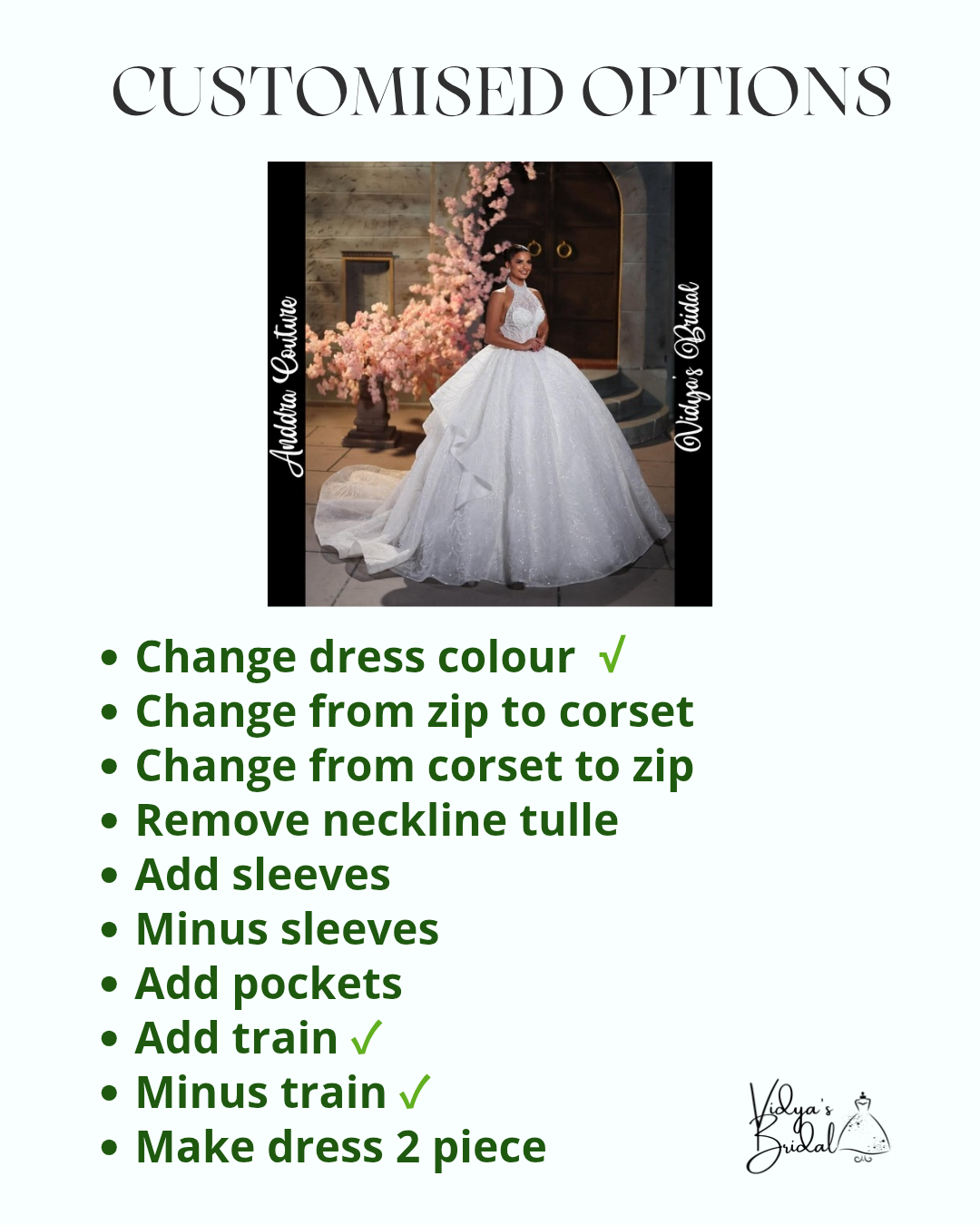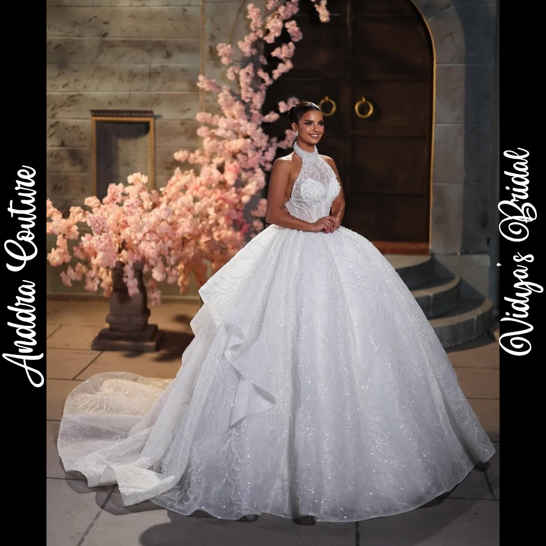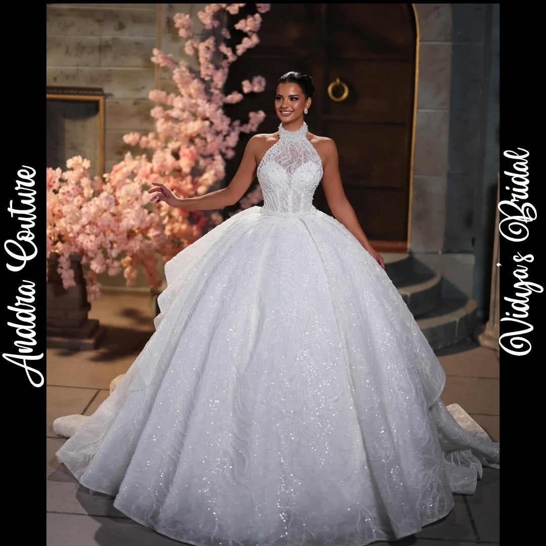 This classic Alter back gown features a dramatic, high-volume back skirt with exquisite beading and appliqués on the bustle. A petticoat is included. This stunning garment is sure to impress your guests.